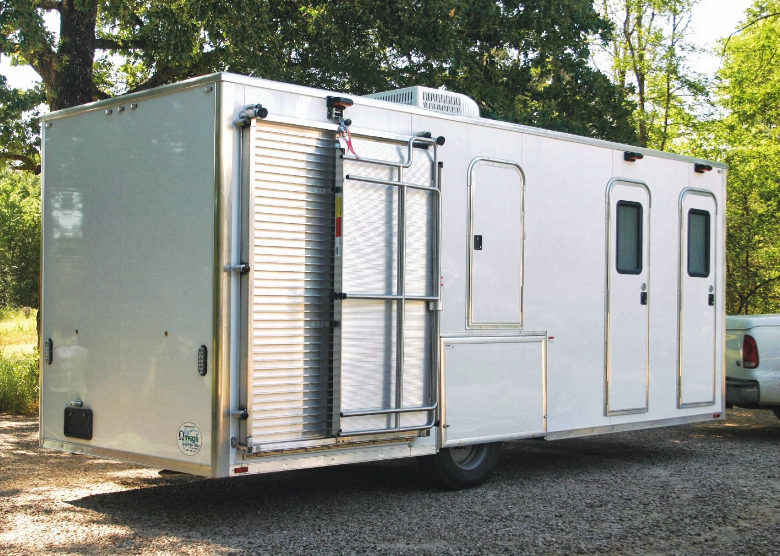 Alpha Mobile Solutions restroom trailer units are self-contained mobile bathroom units that are practical and user-friendly. They come in standard unisex suites that include a toilet, shower, sink, and mirror. These units are constructed of durable, corrosion-resistant materials and can be easily relocated. They are suitable for temporary or permanent use.