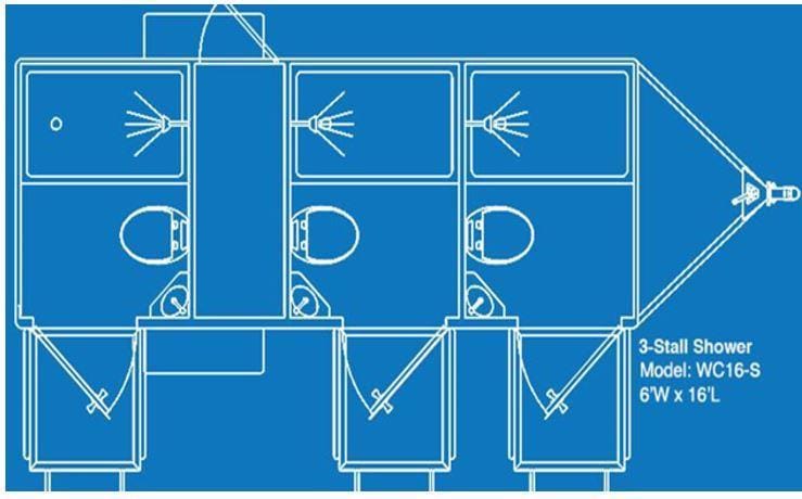 Our 3 private room shower trailer is available with a laundry module. It provides a clean, comfortable, and efficient solution for extended events, job sites, disaster response , and remote locations. Designed for privacy and convenience , each room offers a reliable shower experience while the intergrated laundry capability adds essential functionality.