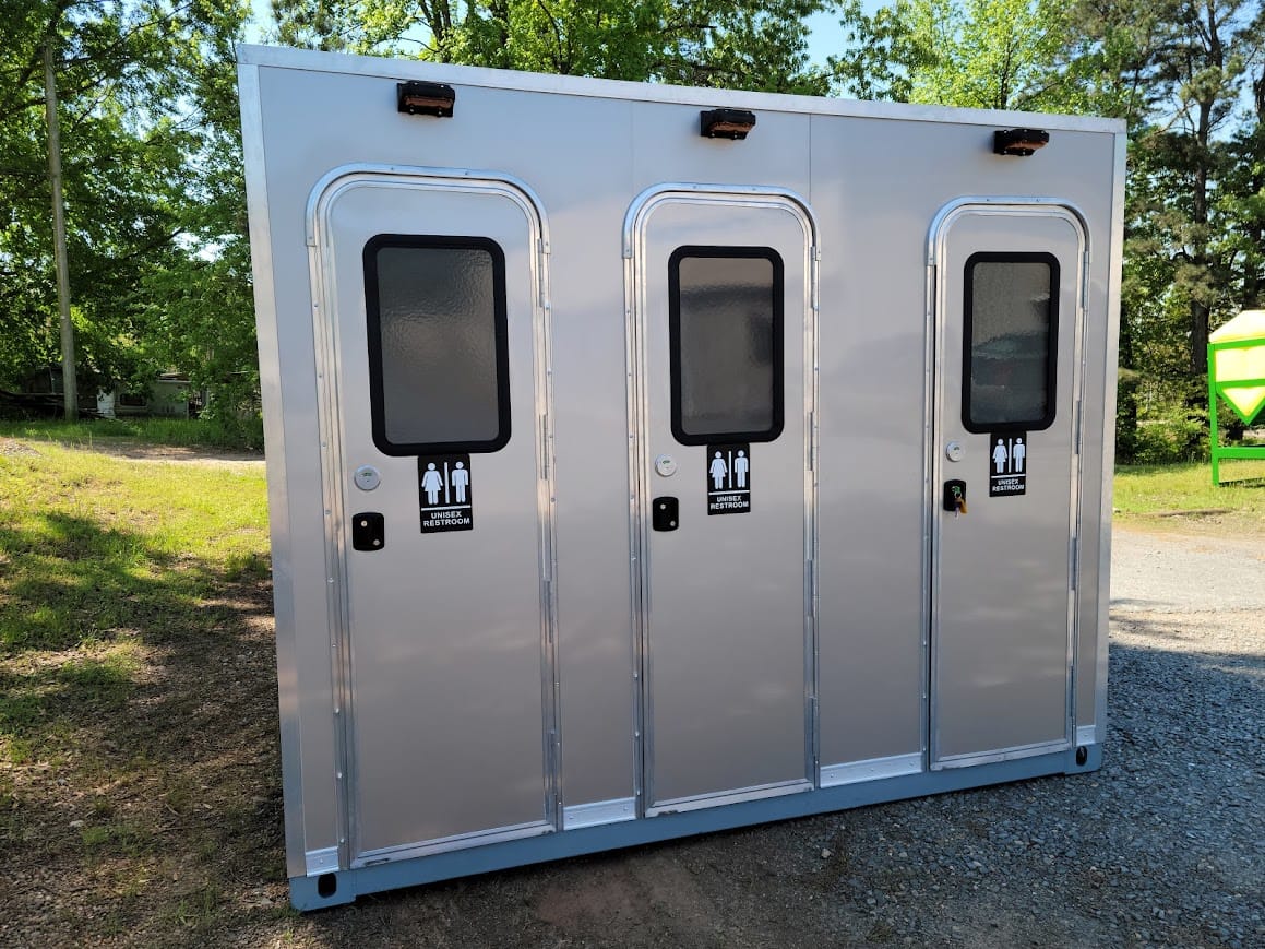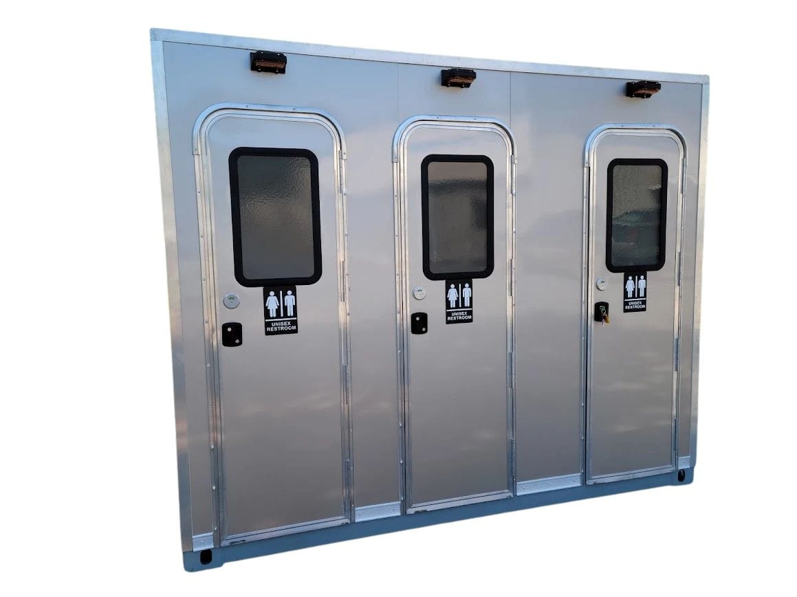 CI 10 – 3 Stall Restroom Skid (10 ft) is a no-wheel restroom skid designed for job sites, parks, facilities, and long-term deployments where a towable trailer is not needed.